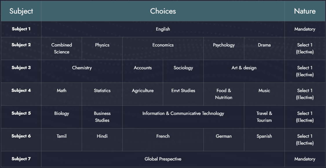 Subject 2 Combined Science Physics Economics Psychology Drama Select 1 (Elective)